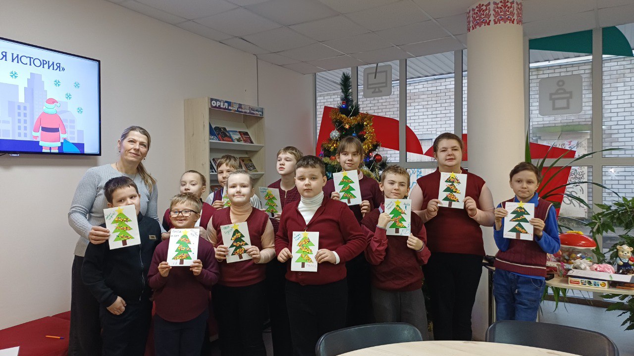 Сегодня обучающиеся 1 «А» и 4 «А» классов приняли участие в увлекательном мастер-классе «Новогодняя история», который прошёл в библиотеке имени А. С. Пушкина. С большим интересом ребята изготавливали новогоднюю открытку в виде праздничной ёлочки. Каждый участник проявил фантазию и творческие способности, поэтому все работы получились яркими, нарядными и по-настоящему оригинальными. Мастер-класс подарил детям радость творчества и зарядил их тёплым, волшебным предновогодним настроением.